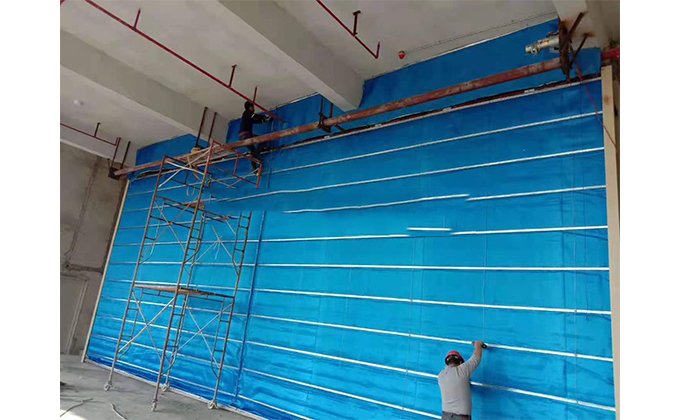 擋煙垂簾垂壁根據(jù)設計要求和現(xiàn)場實際情況采取如下施工順序:首先,搭設腳手架一放線一打眼--上脹栓一焊骨架。第二,吊件一安裝骨架…